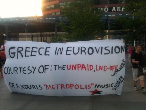 in English with the phrase "Greece in Eurovision - Courtesy of the unpaid,